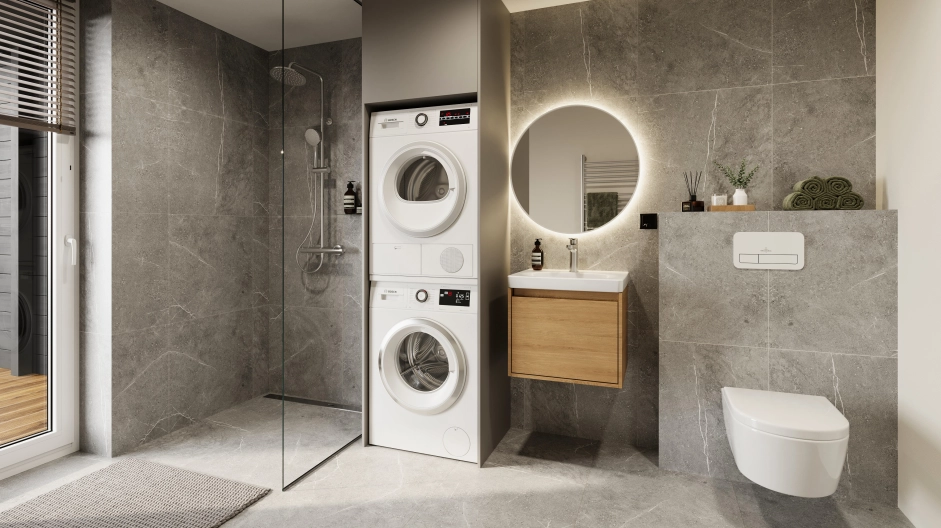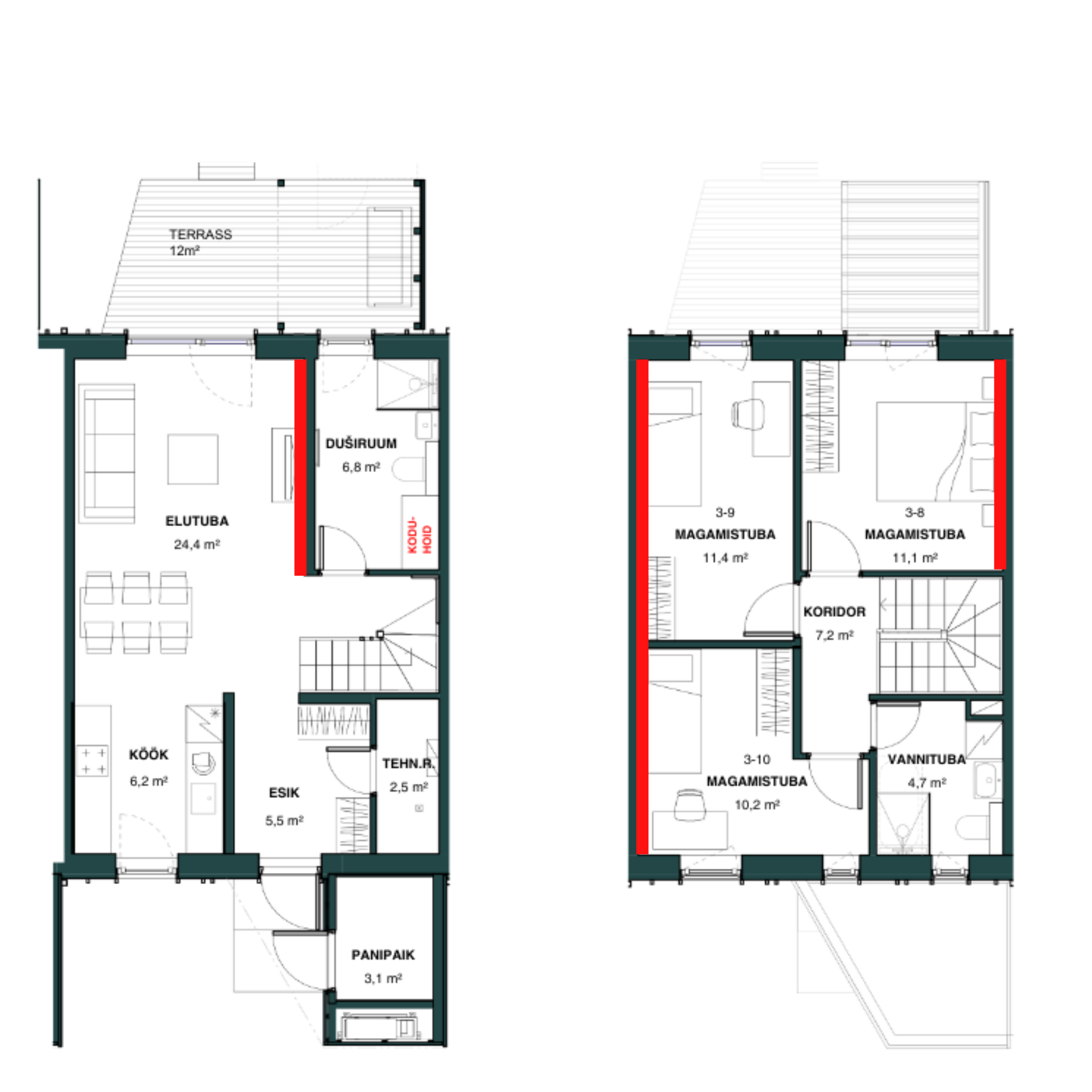 Läbi kahe korruse kulgev kodu mahutab kolm magamistuba ja kaks duširuumi. Ülakorruse pesuruumi saab soovi korral paigaldada ka vanni. Praktiline panipaik maja ees lahendab hooajaliste ja muude asjade hoiustamise.